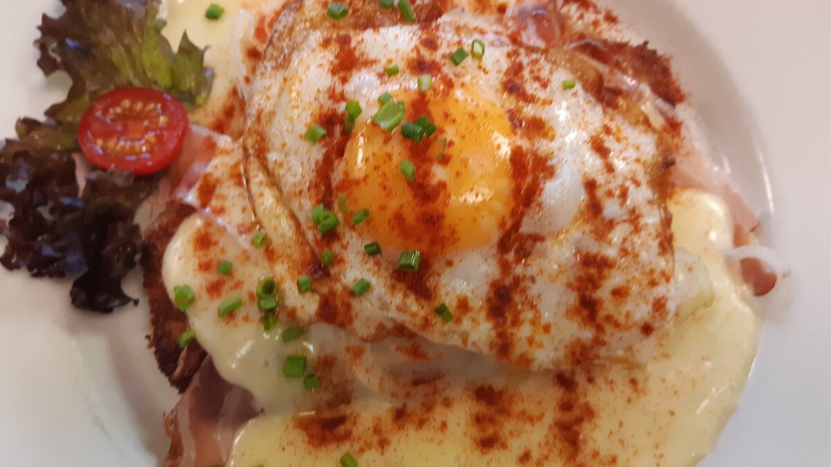 Panierte Schweinsschnitzel mit Rösti, Speck, Bratkäse und Spiegelei